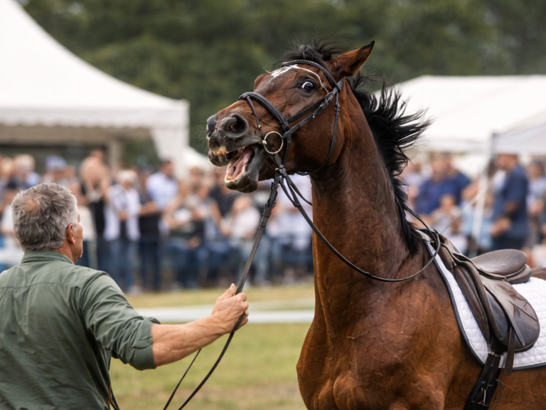 - Pferdebesitzer mit innerem Konflikt zwischen Sport und Gewissen
