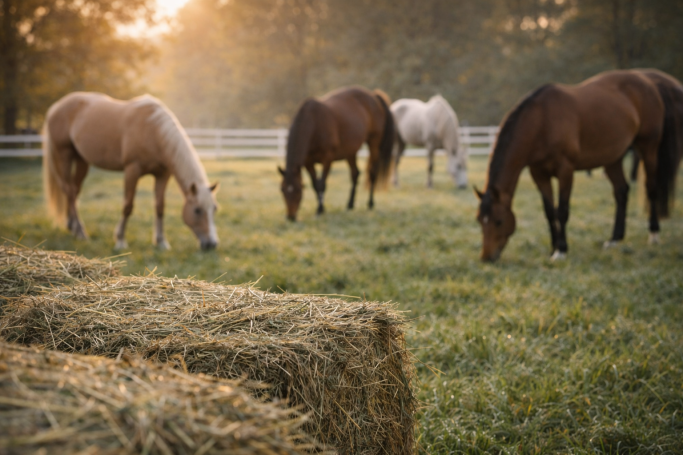 Ein großer Teil des Grundfutters entsteht dadurch direkt im eigenen Betrieb. So entsteht eine konstante und kontrollierbare Futterbasis – ein entscheidender Faktor für Gesundheit, Belastbarkeit und langfristige Entwicklung der Pferde.